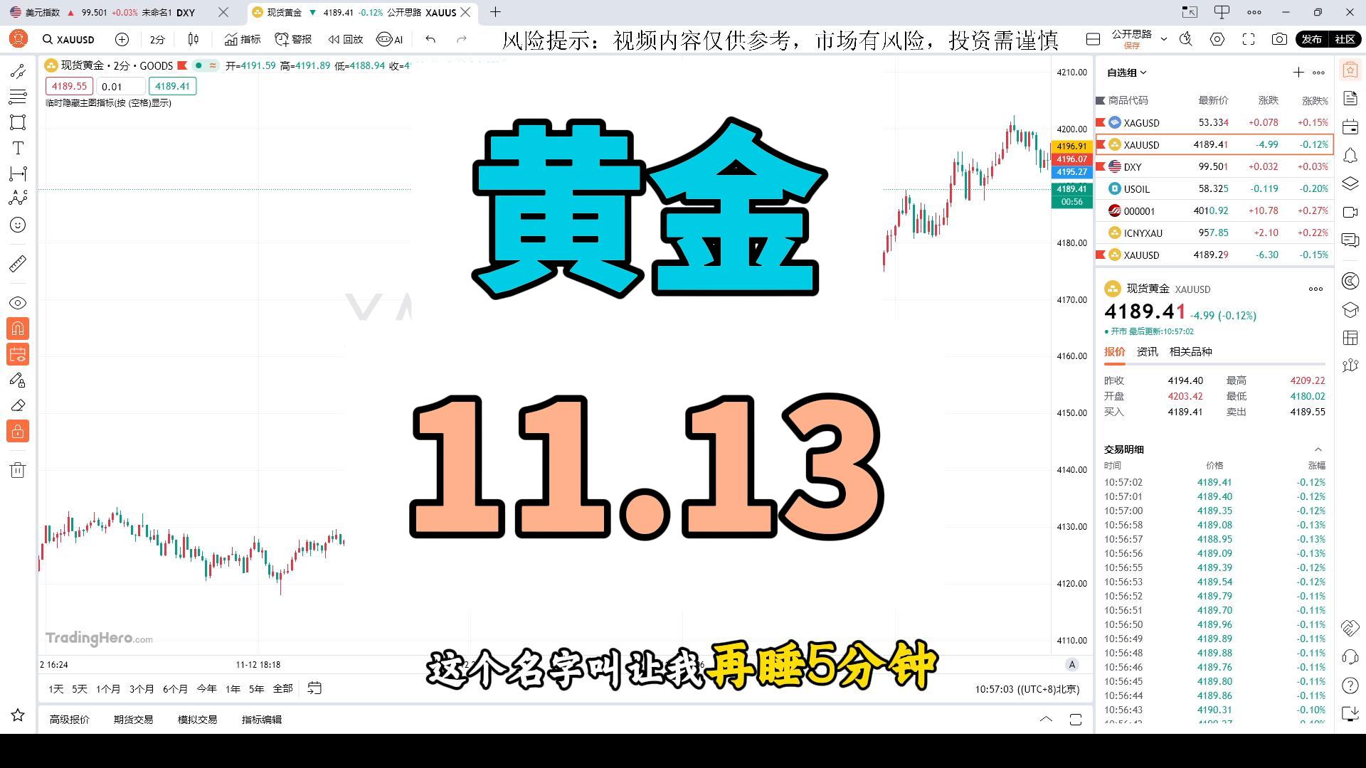11/11一分钟了解今日黄金