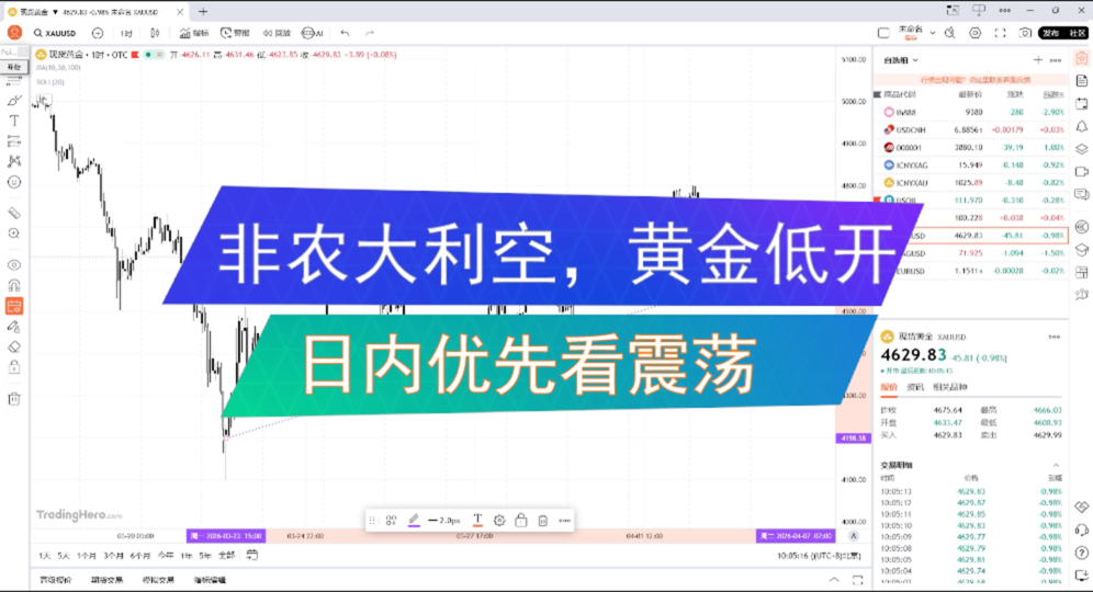 懿枫财经:【4.6日内】黄金震荡上行收窄,破...